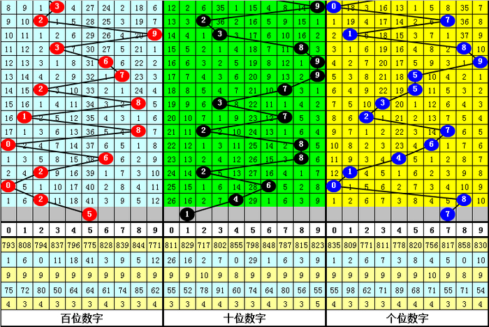 号码频次:在第281期历史同期开奖中,号码0-9出现频次分别为:号码7出现4个,号码2、5出现5个,号码0、3出现6个,号码6出现7个,号码1、8、9出现8个,号码4出现9个,今年同期绝杀一码6,独胆看好1。