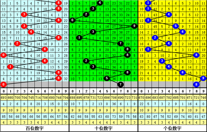 百位:下期开奖百位以1路和2路号码为主,0路号码没有出现,表现非常冷,本期注意0路号码回补,参考号码0。