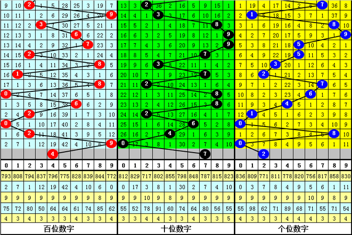 三、十位分析:上期开出号码0,前10次号码0出现之后下期同位号码为:4617466169,其中号码大小比为6:4,基本持平;奇偶比为4:6,基本相等;012路比为5:5:0,1路号码表现相当活跃。本期参考号码:7。