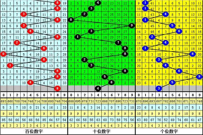 百位:上期开出4,偶数,偶号最近两周明显活跃,连出3期,本期偶号再出,关注8。