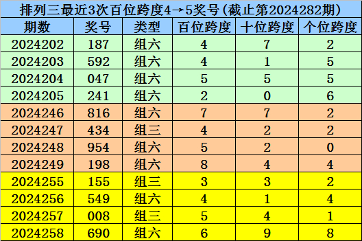 第2024246-第2024248期奖号:816、434、954,其下期奖号为:198,首位号码跨度为8;