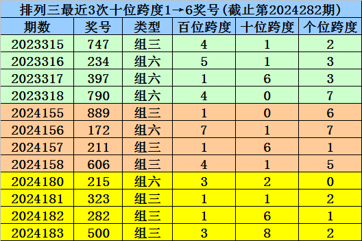第2024180-第2024182期奖号:215、323、282,其下期奖号为:500,中位号码跨度为3;