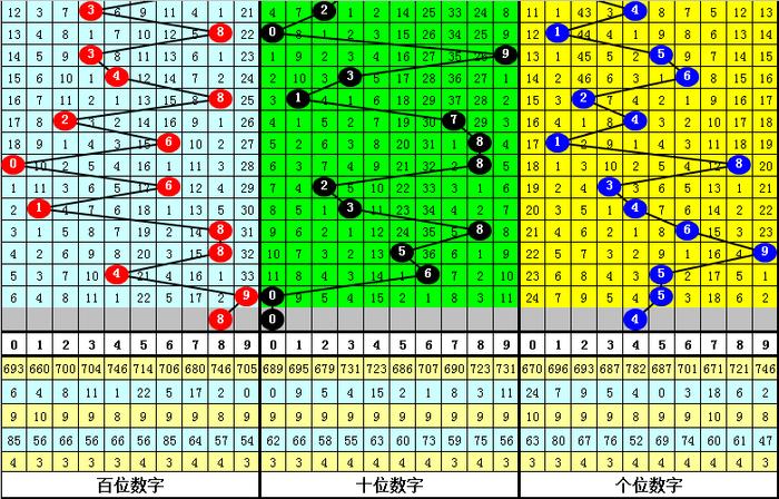百位分析:该位上期开出号码9,最近10期该位012路比为4:2:4,其中0路号码间隔4期再次出现,本期可以放弃0路号码,注意2路号码开出,参考8。