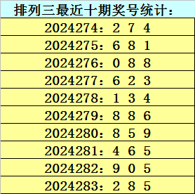 上期回顾:排列三第2024283期开奖号码为285,历史上组选出现28次,直选出现6次。