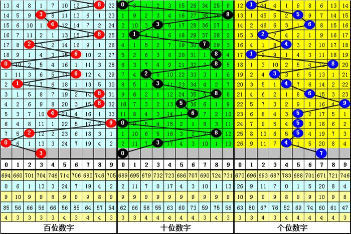 百位分析:该位上期奖号为0,出现0路、偶数、小 号,在前11期奖号,该位012路比为5:2:4,1路号码走冷,目前012路号码遗漏期数分别为0、3和1,近期百位注意0路号码走热。