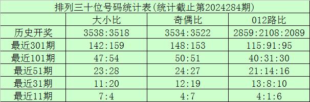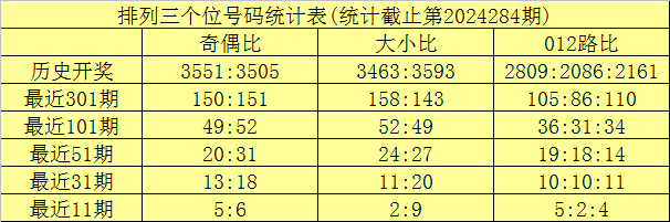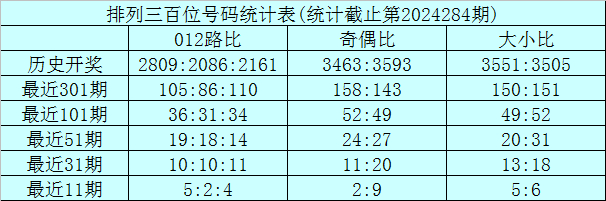 上期回顾:排列三第2024284期奖号为:034。奖号形态组六,大小比0:3,奇偶比1:2,012路2:1:0。
