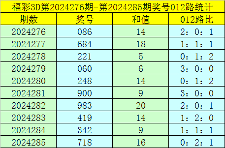 福彩3D第2024286期012路分析