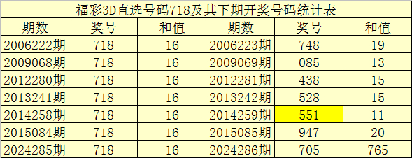 一、开奖回顾:第2024285期福彩3D奖号为718。奖号奇偶比为2:1,和值为:16,跨度为:7。