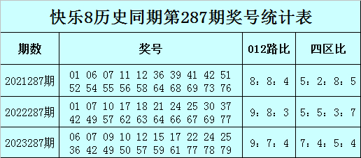 快乐8历史同期第287期012路、四区分析