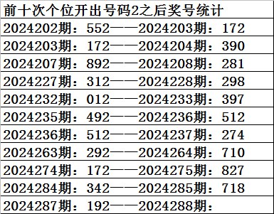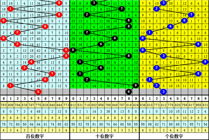 四、个位分析:上期开出号码2,前10次号码2出现之后下期同位号码为:2018724078,其中号码大小比为4:6,基本相当;奇偶比为3: 7,奇数号码表现较冷;012路比为2:4:4,0路号码表现相对较冷。本期参考号码:3。