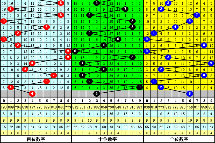 第二位上期开出奖号9,走大7点,本期注意该位走小,关注号码3。