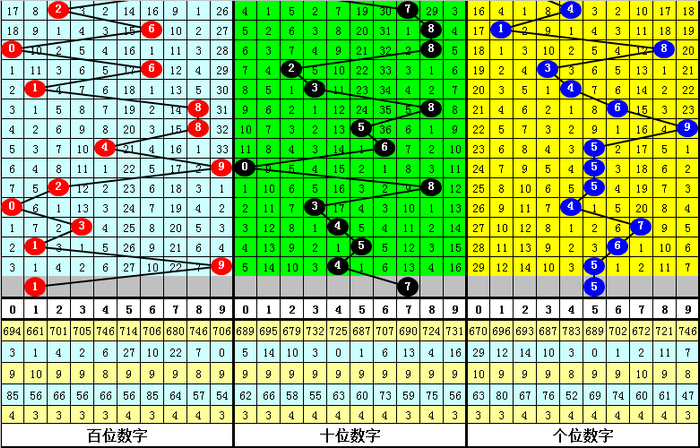 其中,组三开出1次,组六开出18,单选号码0-9分别出现: