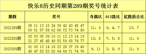 第9、10位号码分析:历史同期第289期分布在14-47之间,其中奖号尾数质合比为2:4、奇偶比为4:2、012路比为2:2:2,去年同期开出奖号:39和40,为全合尾、奇号+偶号、0路+1路组合,今年第289期预计第9、10位开出质尾+合尾组合,参考两码31+44。
