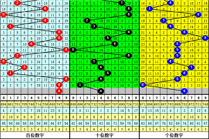 一、在以上统计中,表现最热的四个奖号为:8、4、3、5,一般来说这四码中包含当期开奖号码,本期看好号码4出现;走势最冷的三个奖号为:7、9、0,在实际开奖中当期奖号不会全部出现在这三码中,本期可以排除号码9。