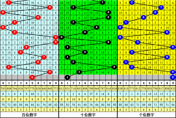 末位跨度分析:前3期末位奖号为1-2-9,最近两期末位奖号跨度为1、7,末位奖号跨度历史上连续两期开出1、7的现象共75次,其最近两次奖号为: