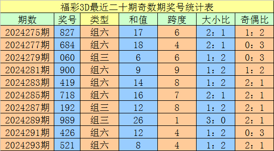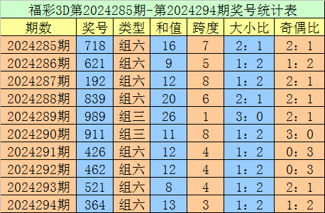 上期回顾:福利彩票3D第2024294期开出奖号364。奖号类型:组六,大小形态:小大小,奇偶形态:奇偶偶。