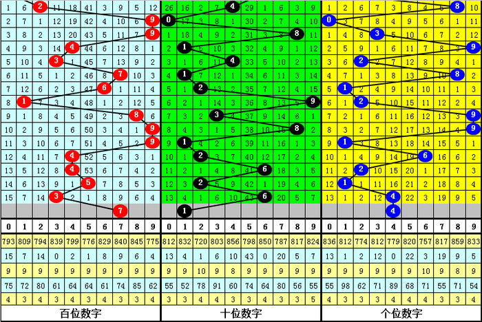 跨度分析:最近5期奖号跨度出现在3-8区段,波动了6个点位,分布较散,上期跨度为3,下降1点,本期看好考跨度上升,预计出现6。
