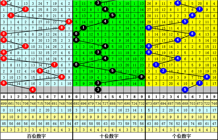 其中,号码奇偶比为30:27,奇偶号码开出比例相当;号码大小比为36:21,大号强势活跃;号码012路比为28:7:22,1路号码出现较少。
