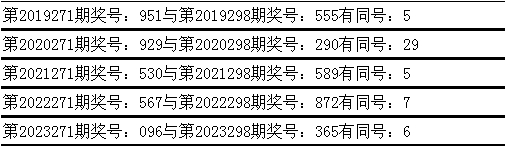 与前期历史同期奖号对比分析,在最近五年开奖中,第271期同期奖号与第298期同期奖号都出现了相同号码: