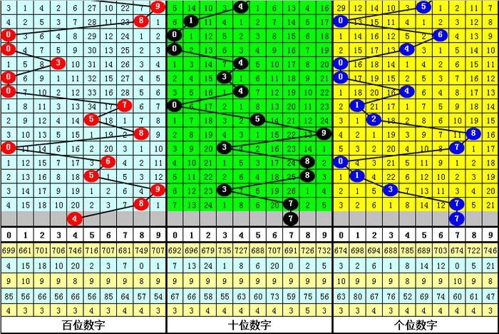 历年第302期排列三奖号中,开出次数最多三码为:1、4、9,本期注意号码:4。