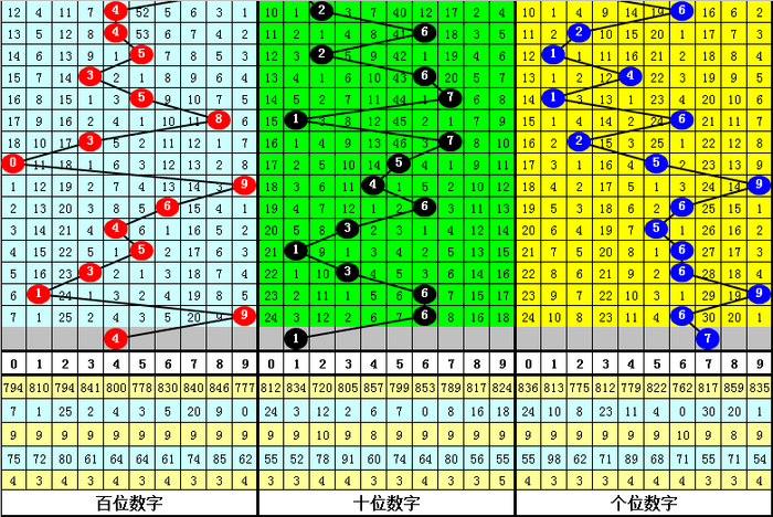 和值分析:最近30期和值012路比为15:6:9,奇偶比为9:21,大小比为13:17,本期预计和值出现0路、偶数、小数号码,一码和值关注12。