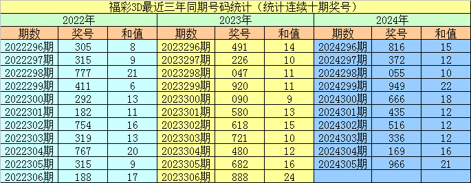 福彩3D上期奖号为966,去年同期与今年同期前20期奖号对比。