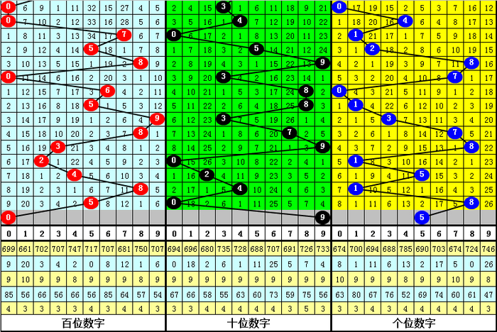 跨度分析:上期奖号跨度为8,上升1点,本期看好跨度继续上升,参考跨度9。