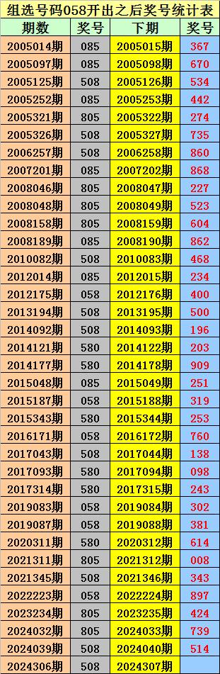 排列三组选058出现之后下期分别开出:367、670、534、442、274、735、860、868、227、523、604、862、468、234、400、500、196、203、909、251、319、253、760、138、098、243、302、381、614、008、343、897、424、739、514。