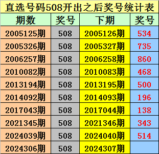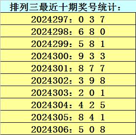 上期回顾:排列三第2024306期开奖号码为508,历史上组选出现36次,直选出现10次。