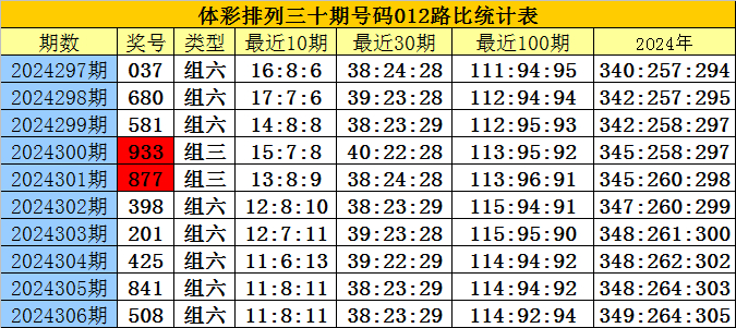开奖回顾:排列三第2024306期奖号为:508,号码012路比为1:0:2。
