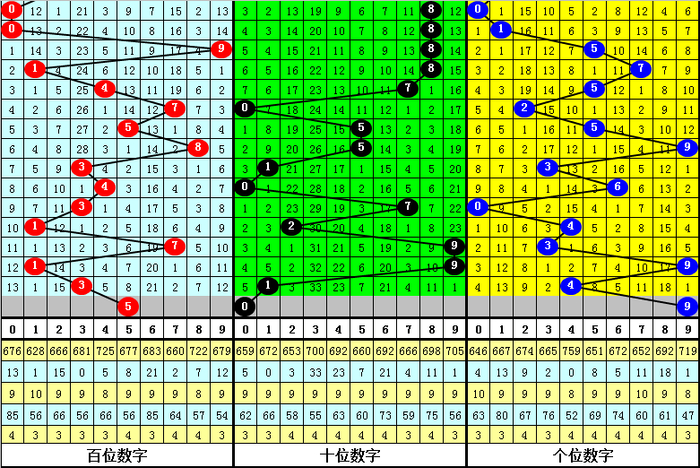 百位:当前遗漏最大的号码为6,遗漏21期,历史上该号最大遗漏为85期,本期百位继续排除号码6。