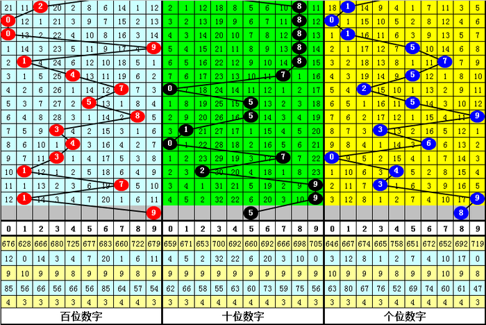 第二位推荐:前30期该位7-9之间大号开出14次,目前遗漏0期,其中号码8出现7次,目前遗漏10期;号码7出现3次,目前遗漏3期;号码9出现4次,目前遗漏0期。