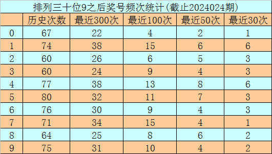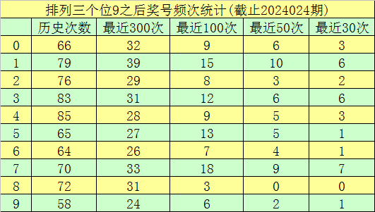 第三位杀号:第三位上期出现奖号9,该位历史上奖号9已开出了719次,最近100次第三位开出9时,下期号码0-9分别落号:号码7→18次,1→15次,5→13次,3→12次,0、4→9次,2→8次,6→7次,9→6次,8→3次。