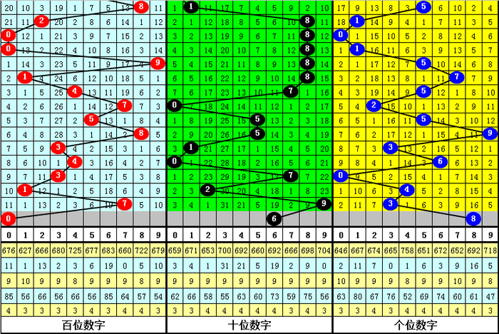 3.在以上9期奖号中,号码012路比分别开出1:2:0、1:1:1、2:0:1、0:1:2、0:2:1、2:0:1、1:2:0、1:0:2、2:1:0,012路出现个数比为10:9:8,本期预计开出012路比2:0:1。