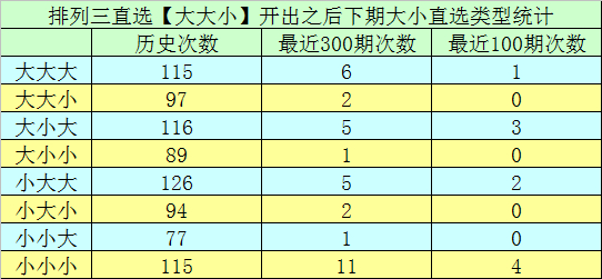 2.在前9次直选【大大小】组合之后,下期开奖号码分别为:314-807-365-728-442-965-314-289-403,组三包含1期,组六包含8期。本期奖号排除对子,看好开出组六。