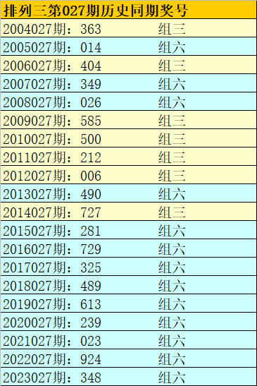 则,排列三第2024025期奖号:314,与排列三第2024027期奖号可能有相同的号码。且排列三第2024027期奖号大小比、奇偶比和012路比可以参考第2024025期奖号形态:小小小、奇奇偶和011路。