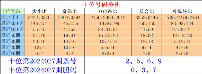 近期十位奇数表现活跃,目前遗漏4期,本期注意奇号回补;该位温冷号码近期出现较少,最近2期连续开出温冷号码,本期防温冷号码继续回补。十位杀号:2569,胆码关注:037。