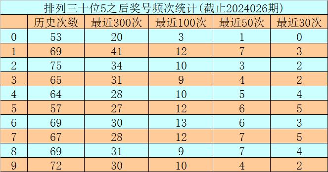 第二位杀号:第二位上期开出奖号为5,该位历史上奖号5开出了661次,最近100次第二位奖号出现5后,下期落号0-9次数从高到低分别为:号码6→13次,1、5、7→12次,2、4、9→10次,3、8→9次,0→3次。