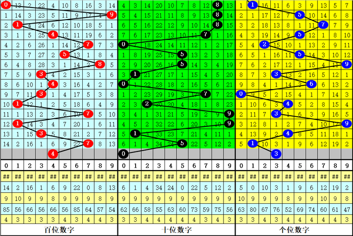 第三位开奖1在最近三次之后,下期落号分别为:3-0-5,奖号出现在:热号区段、冷号区段、冷号区段,本期看好第三位在热号区段出现,排除冷号区段5码:01457。