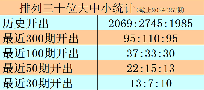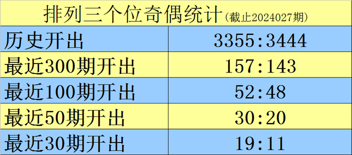 上期回顾:排列三2024027期奖号为502,类型为组六,奇偶比为1:2,大小比为1:2,和值为7。