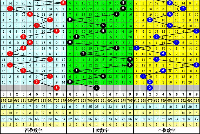 第二位3-6之间的中号开出7个,目前遗漏1期,其中号码3出现0次,目前遗漏35期;号码4出现1次,目前遗漏25期;号码6出现2次,目前遗漏23期;号码5出现4次,目前遗漏1期。