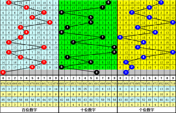 在以上奖号中,下期开奖百位号码统计:奇偶分布分别为:奇-奇-奇-偶-奇-奇-奇-奇-偶-奇,其中偶数表现较冷,本期百位看好偶数出现;大小分布分别为:小-大-大-小-大-小-大-大-大-大,其中小号走势较冷,本期百位看好小号回补。百位参考号码:0