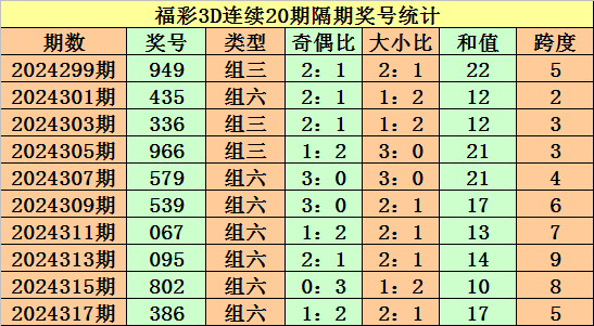 上期回顾:福彩3D第2024318期奖号:525。组三、大小大、奇偶奇。