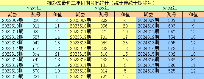 福彩3D上期奖号为525,去年同期与今年同期前20期奖号对比。