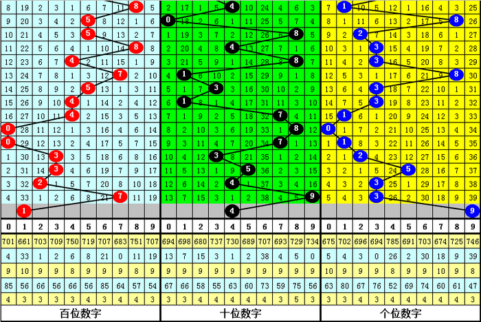 从以上统计可以看出,百十位两码合差6与2同时出现之后其下期两码合差表现最热的4个分别为:0236,本期百十位两码合差可以参考这四码中的数据。
