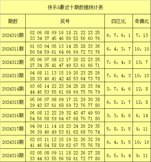 快乐8第2024319期开出奖号:02 05 08 09 11 18 22 26 27 28 33 44 53 55 56 58 61 72 77 80,其中奖号和值为745,跨度为78,012路比为5:5:10,四区比为6:5:5:4,奇偶比为9:11。