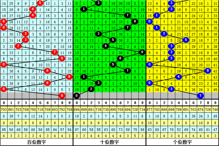 奇偶判断:上期排列三奖号为023,奇偶为:偶偶奇,近7次出现奇偶:偶偶奇奖号分别为:201-425-841-843-483-243-863。