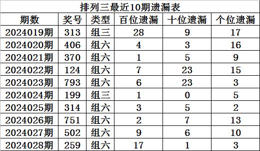 上期回顾:排列三第2024028期奖号:259,组六,直选遗漏总值为21期。