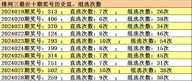 开奖回顾:排列三2024028期开奖:259,组六,和值16,跨度7,奇偶比2:1,大小比2:1。