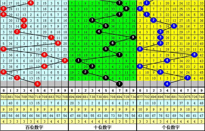 个位号码上期为7,质号,合号近期开出频次较低,当前遗漏2次,相对较冷,本期注意合号回补,关注4。